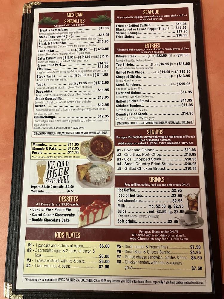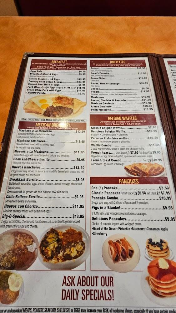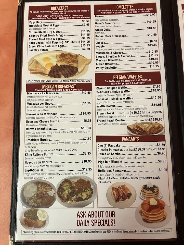 Welcome to Alamo Pancake & Steakhouse Grill, where homemade deliciousness awaits you! Located at 2913 N White Sands Blvd in Alamogordo, NM, we specialize in hearty breakfasts and satisfying dinners, perfect for solo visits or family gatherings. Enjoy our diverse menu featuring local specialties, excellent coffee, and an impressive selection of teas. With convenient amenities like delivery, takeaway, and wheelchair accessibility, we ensure a comfortable dining experience for all. Join us for a relaxed meal in a cozy atmosphere, where our friendly service and great value (with meals ranging from $10 to $20) make every visit memorable.